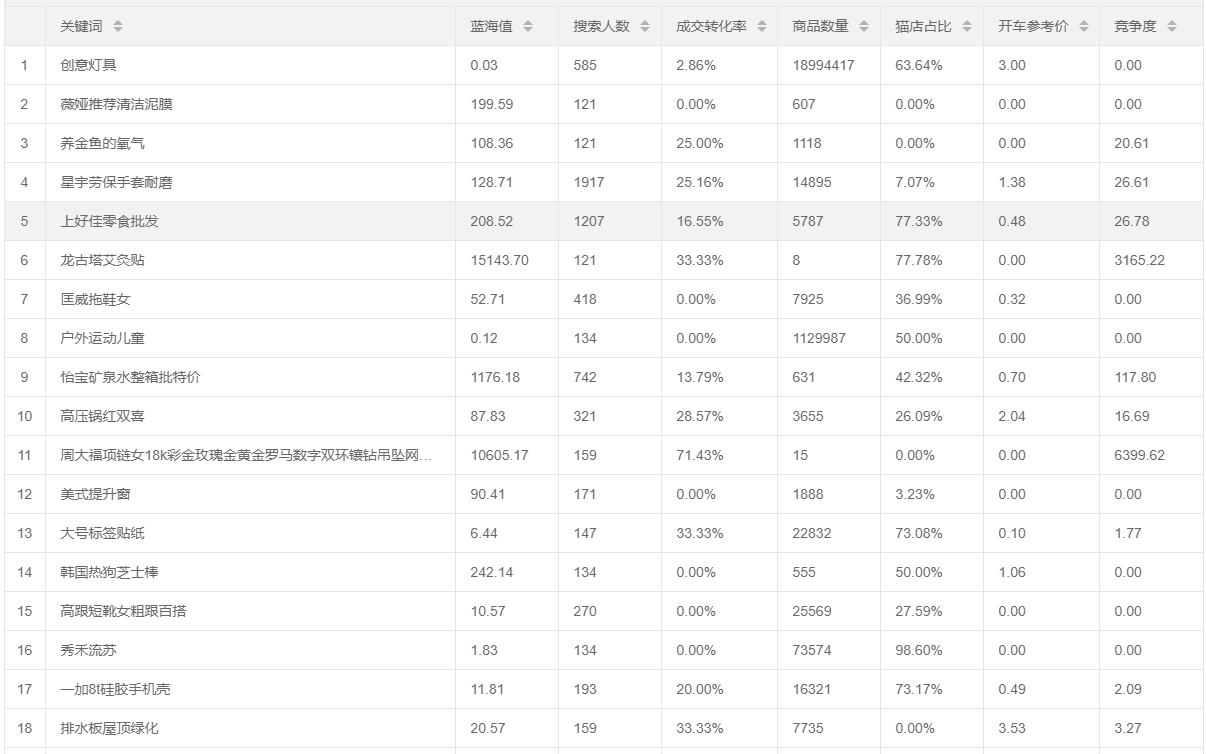 全网高转化率蓝海词榜单