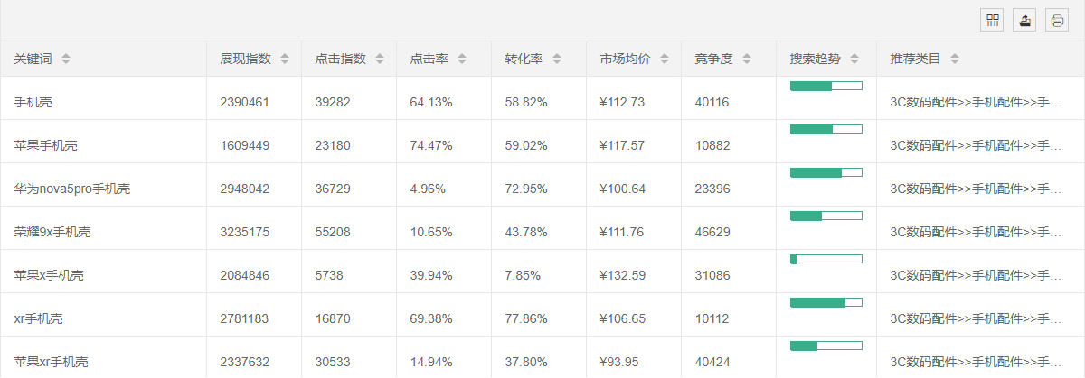 精准淘词数据来自于直通车后台的流量解析(而非生意参谋),每周更新一次。旨在帮助淘宝、天猫商家查询产品核心词下的关联词,及其展现指数、点击指数、平均点击率、转化率、平均点击单价、竞争度及搜索趋势等数据。各项数据仅供大家参考,选取最适合自己店铺的关键词进行优化和推广,而不再盲目操作。